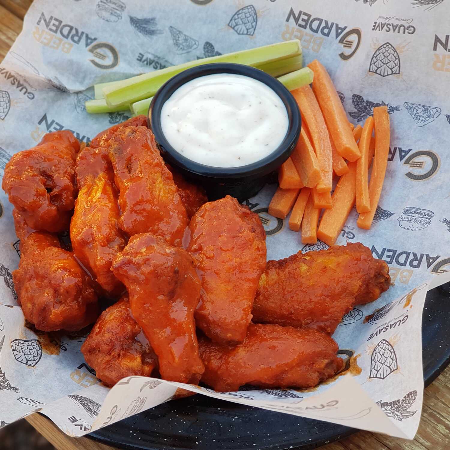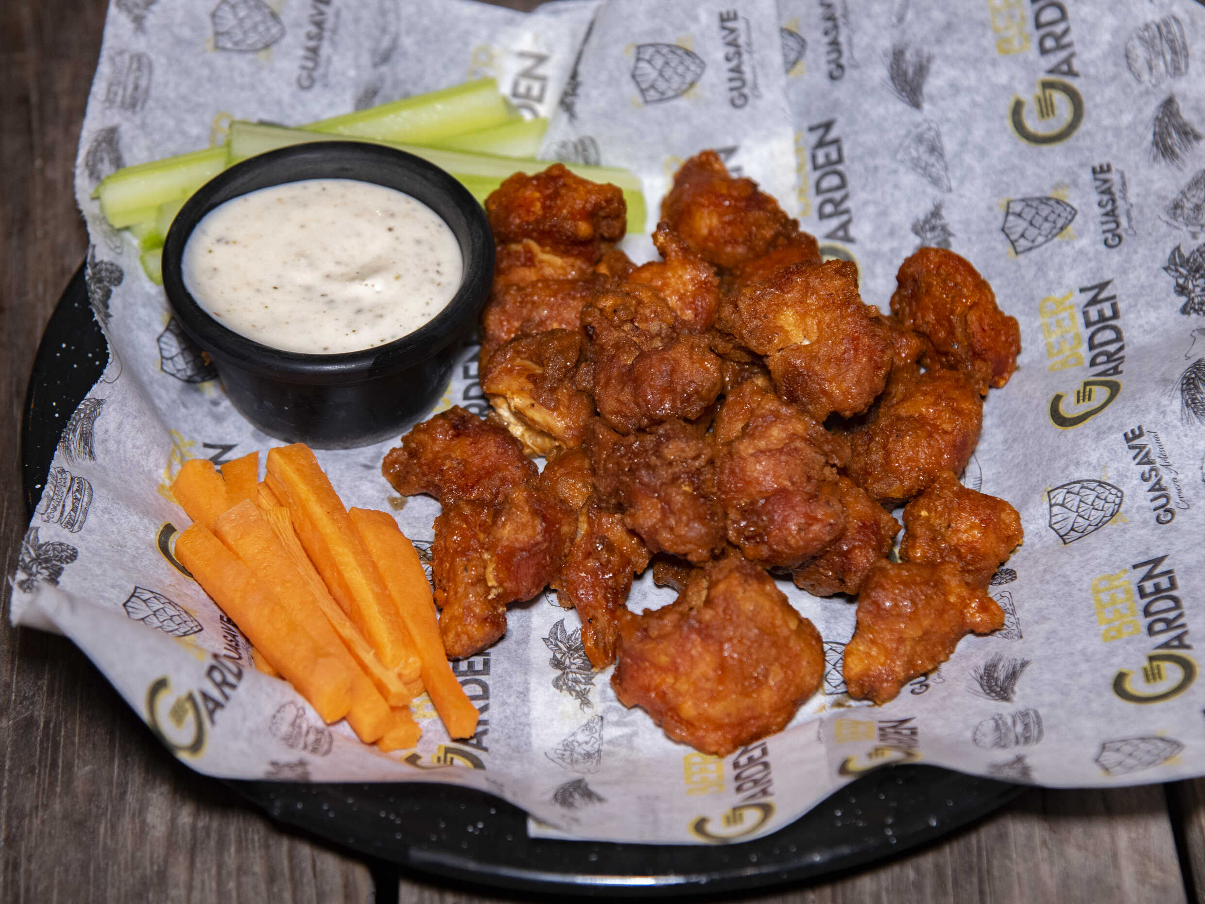 250gr de pollo boneless marinado en salsa bufalo habanero, base de lechuga, cebolla y tocino