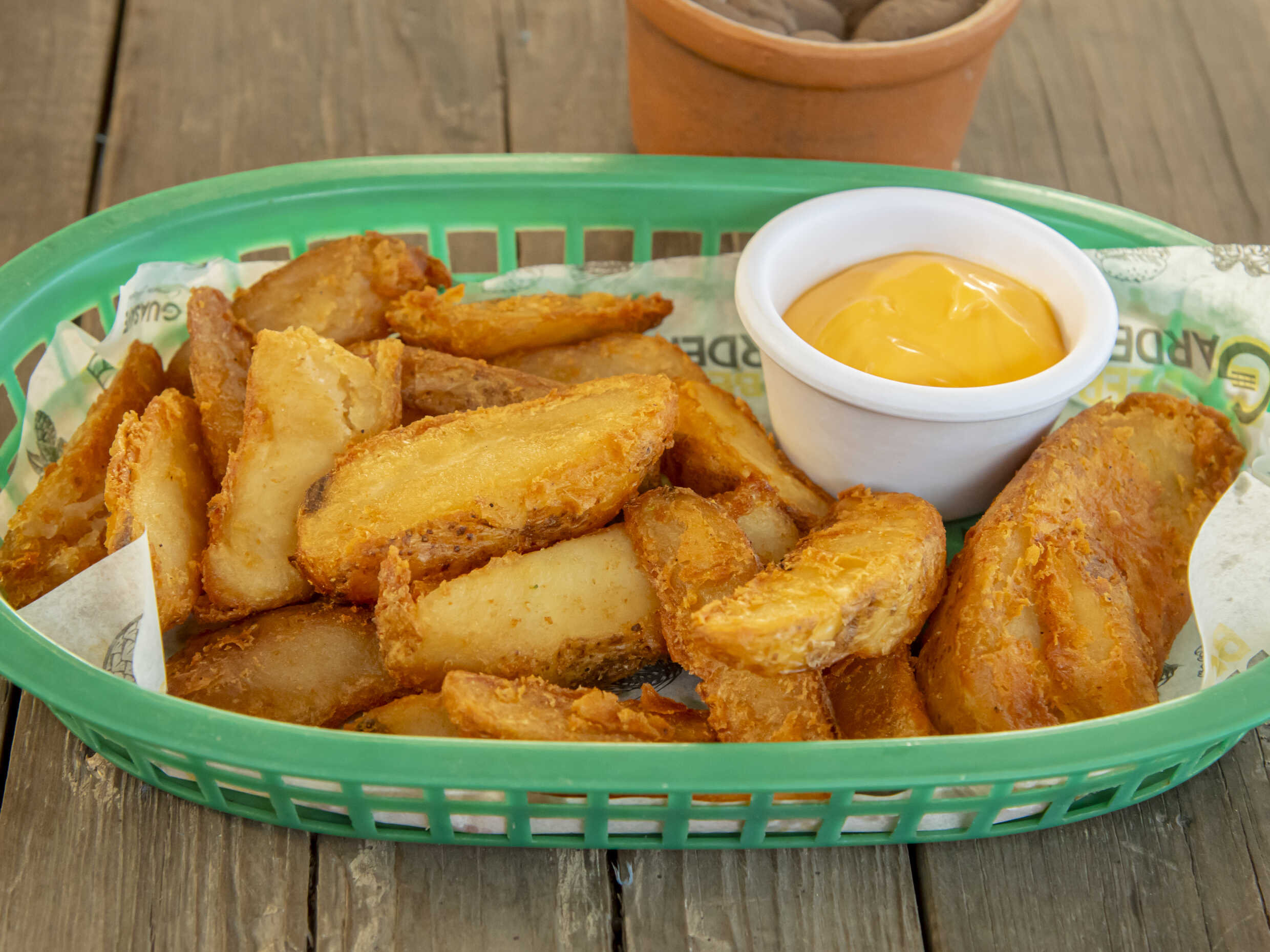 Papas gajo especiadas y fritas.