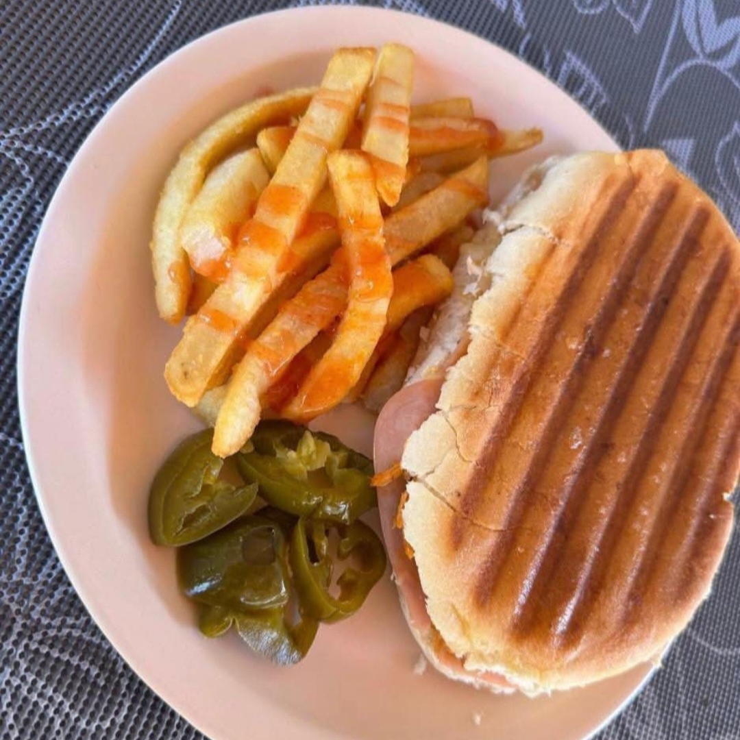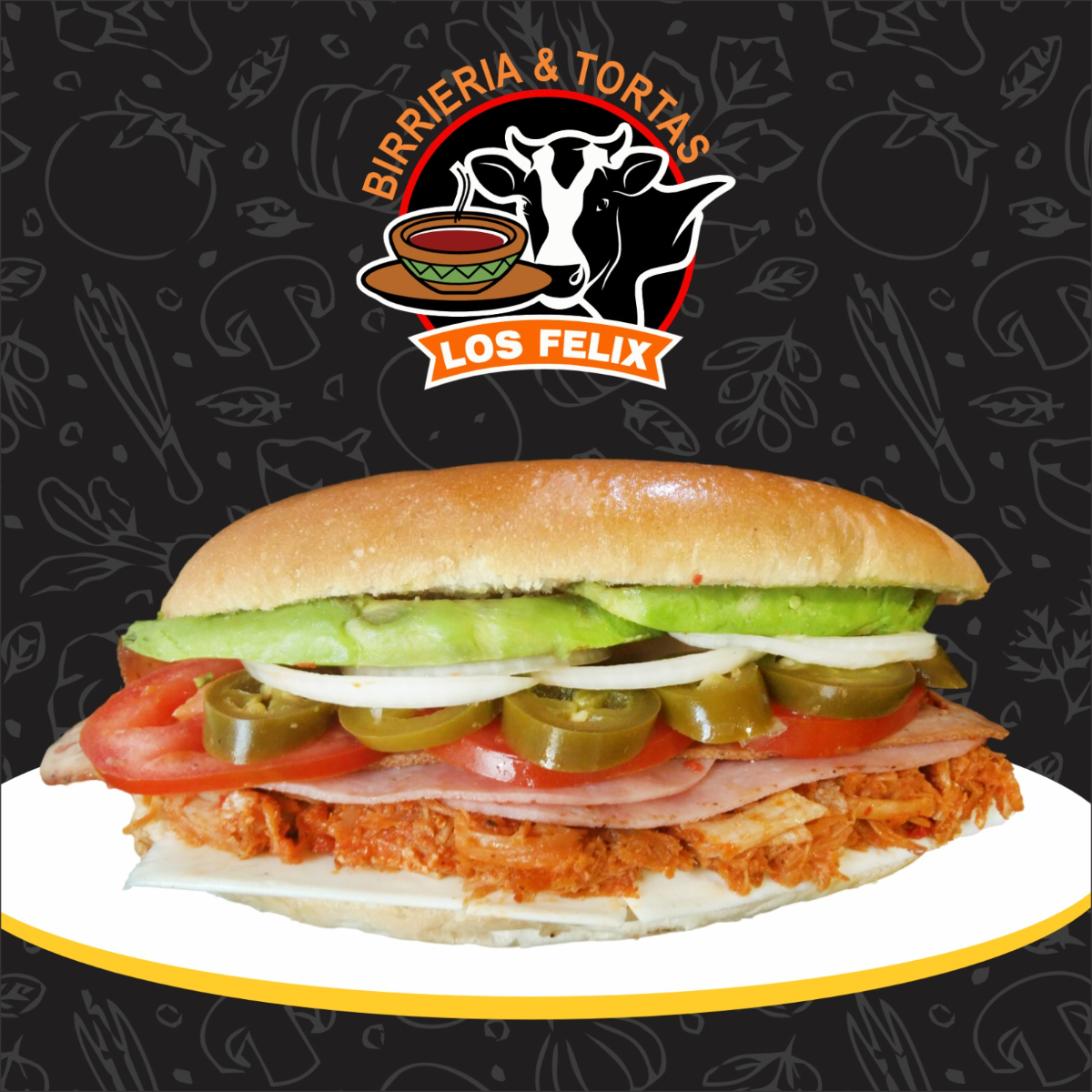 Torta,con birria tatemada,ademas de verduras fresca y consome