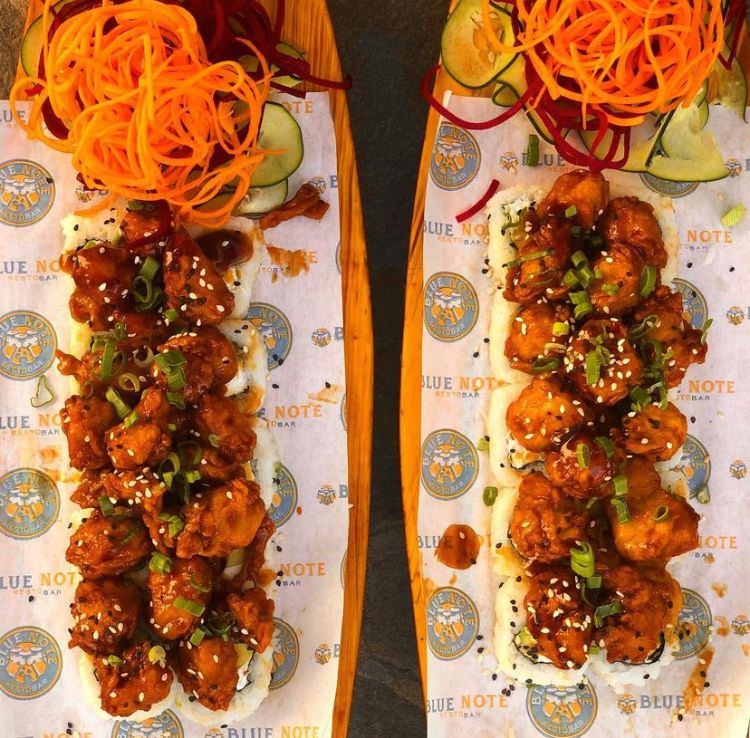 Por dentro queso Philadelphia, aguacate y pollo empanizado, por fuera, queso gratinado mix de quesos y boneless en salsa BBQ, buffalo o combinados.