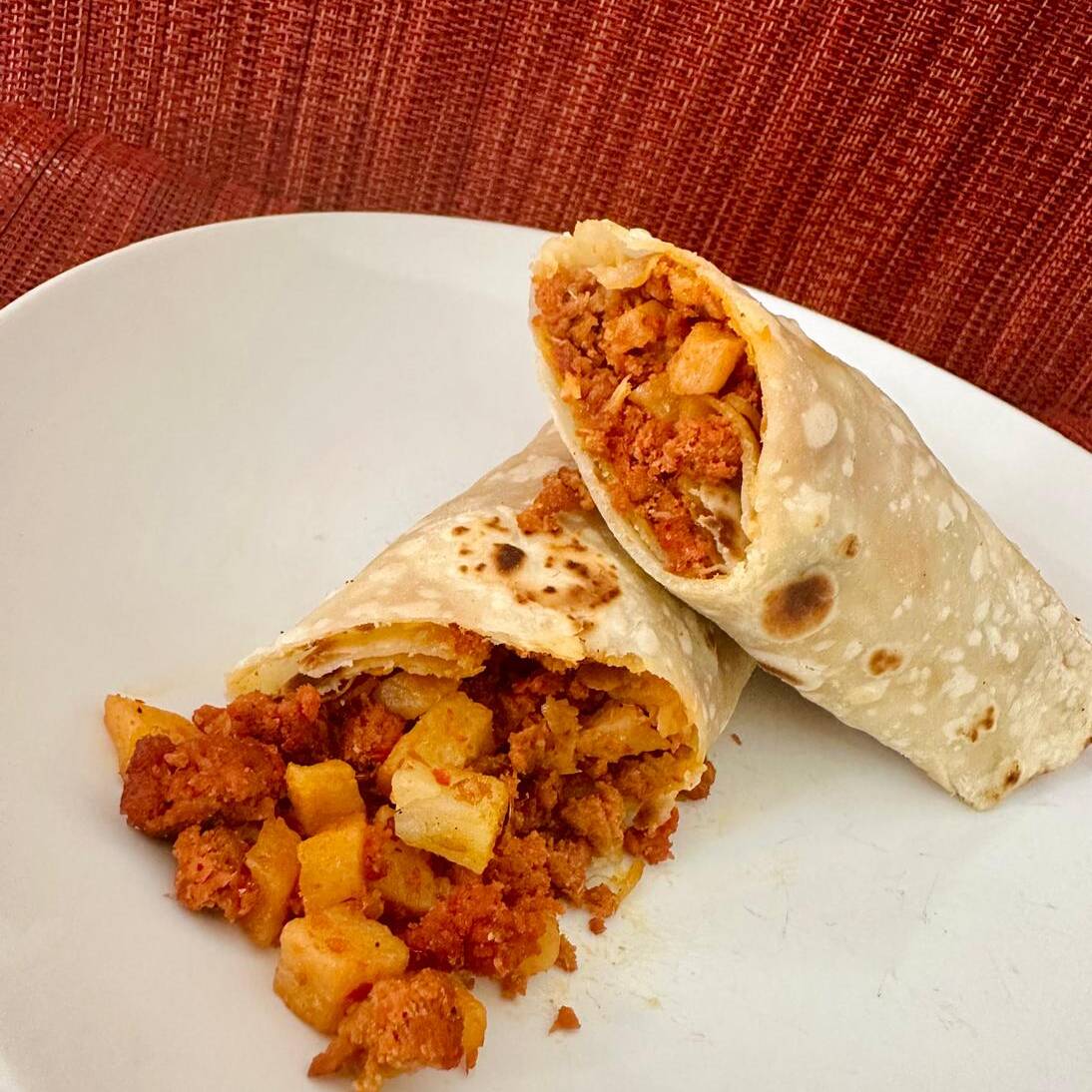 DELICIOSO BURRITO CON CHORIZO 100% CASERO CON UN TOQUE DE FRIJOL PUERCO