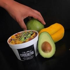 AGUACHILITO DE CAMARON CRUDO, CON CEBOLLA MORADA, PEPINO Y NUESTRO SALSEADO DE CASA,