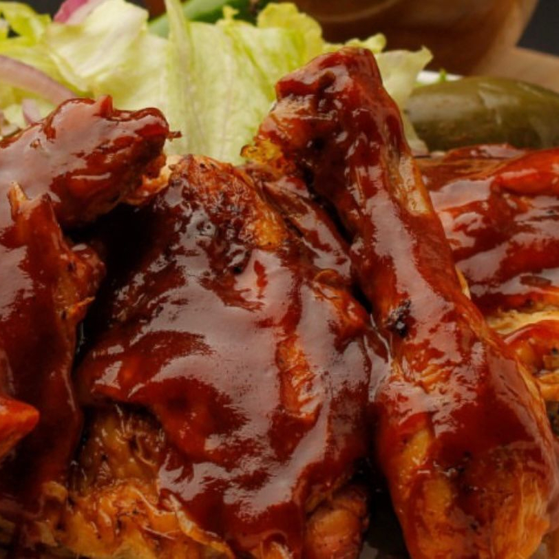Pollo rostizado bañado en nuestra deliciosa salsa bbq