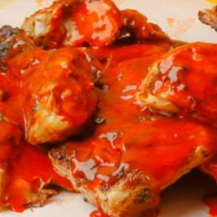 Pollo rostizado bañado en una deliciosa salsa bufalo