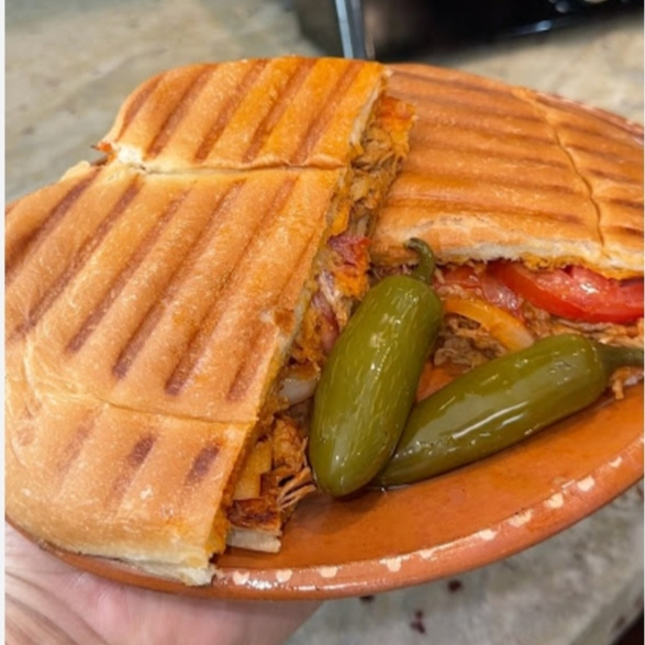Torta de pierna, jamón, queso americano, lechuga, tomate., cebolla, aguacate