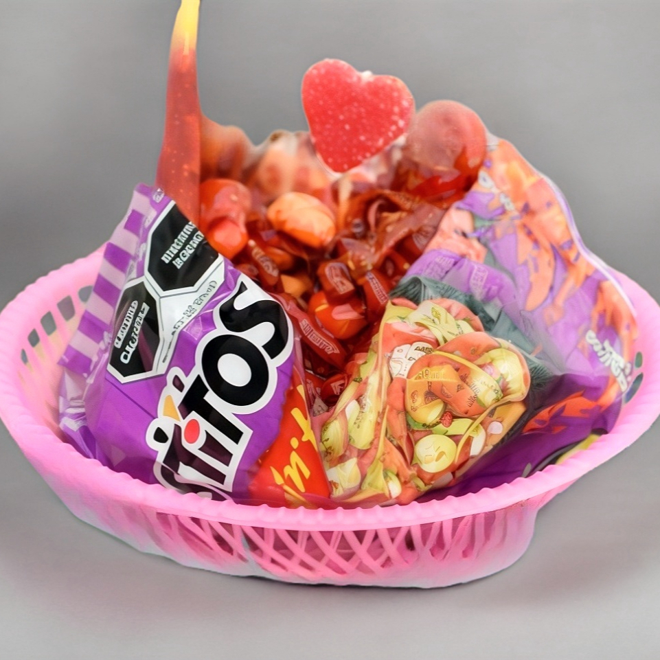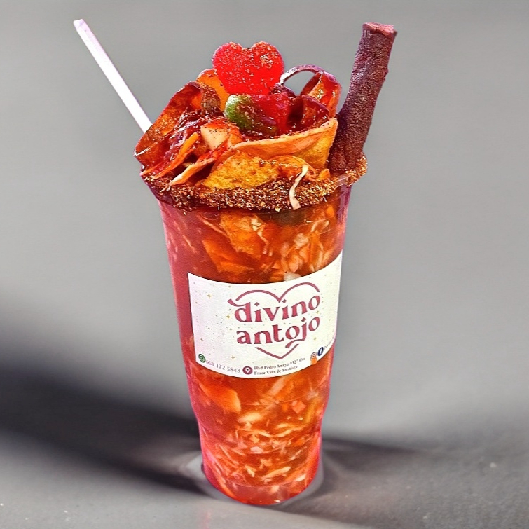 Incluye pepino, repollo, zanahoria, salchicha, cuerito, riel, serpentina, mix de gomitas, salsas, clamato y limon.