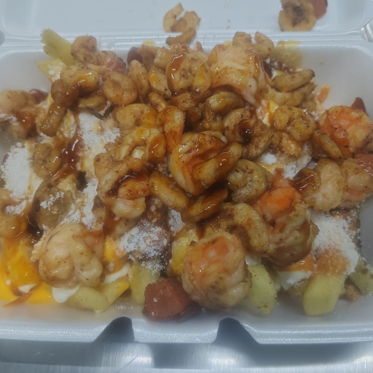SALCHIPAPAS DE CAMARON CHICAS