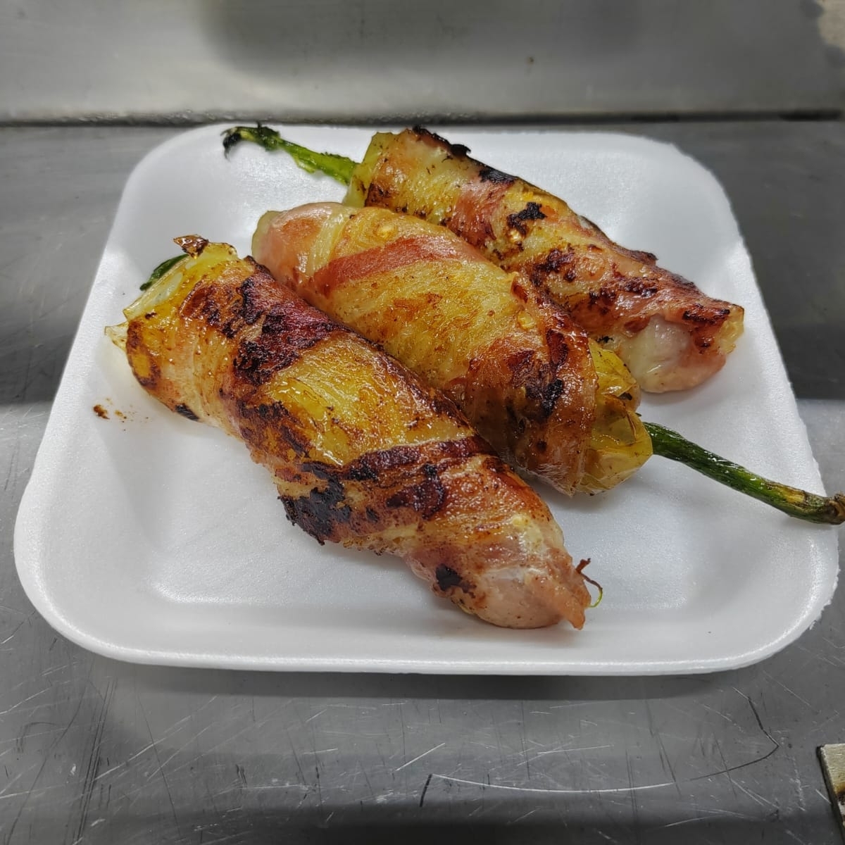 Chile caribe relleno de camaron jamón y queso y tocino
