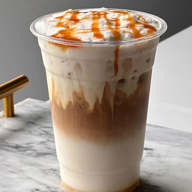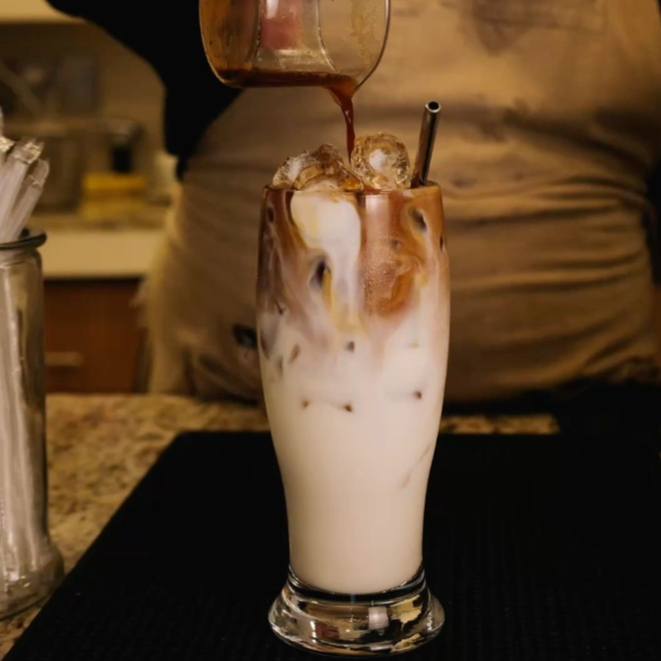 Latte suave y aromático, perfecto para disfrutar en las rocas.