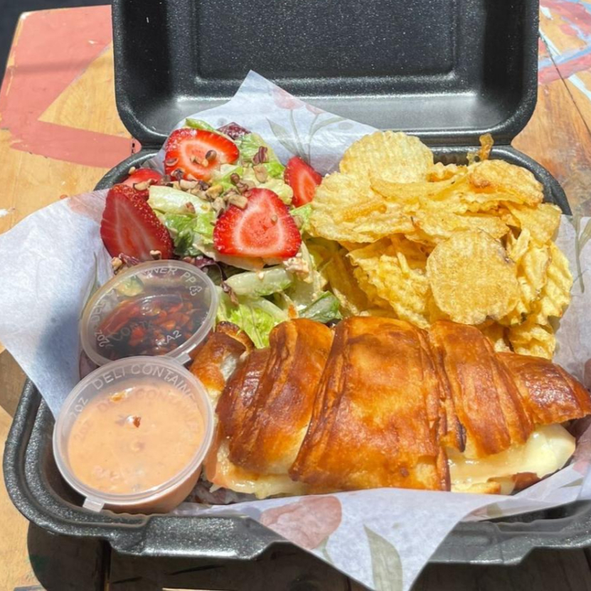 Crossaint suave con queso manchego y jamón de pavo.