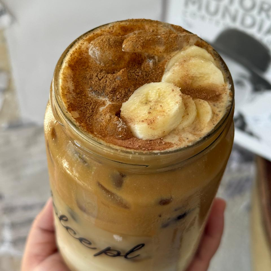 Banana latte: banana latte, una combinación exótica y deliciosa de café con el dulce sabor de la banana, perfecta para disfrutar en cualquier momento.
