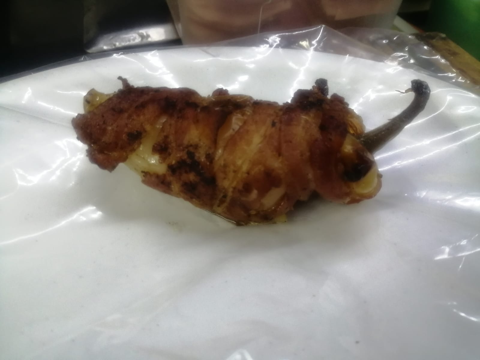 Chile anaheim relleno de queso philadelphia, jamón, queso chihuahua y salchicha.