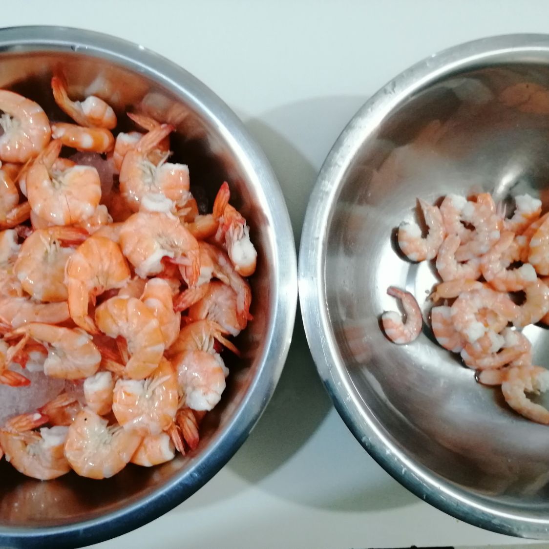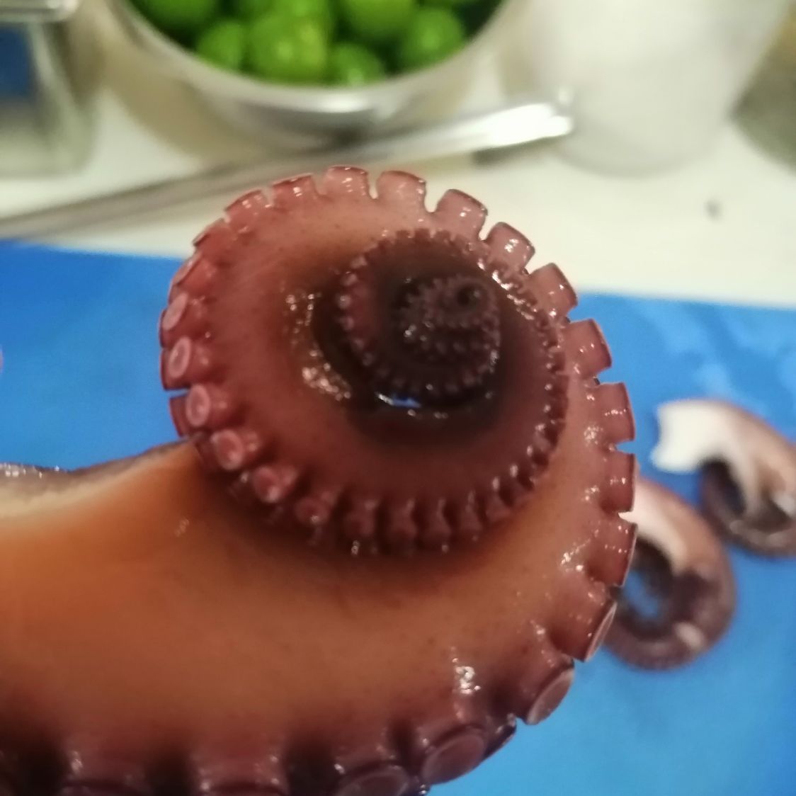 Camarón cocido + pulpo + ceviche Mixto + aguacate + Clamato preparando.