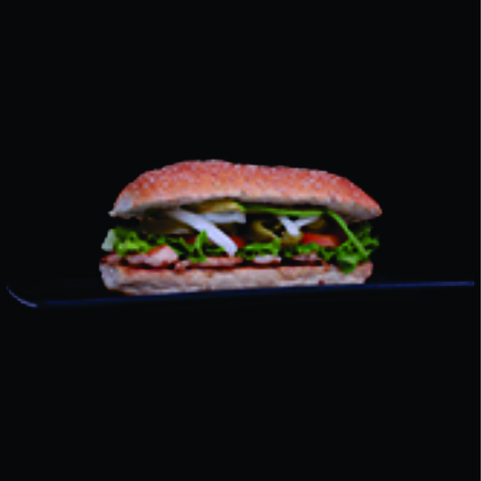 Pan brioche, guacamole, 120grs de boneless, bañados en salsa bbq, queso