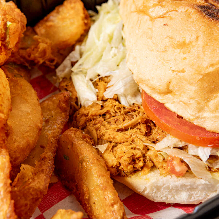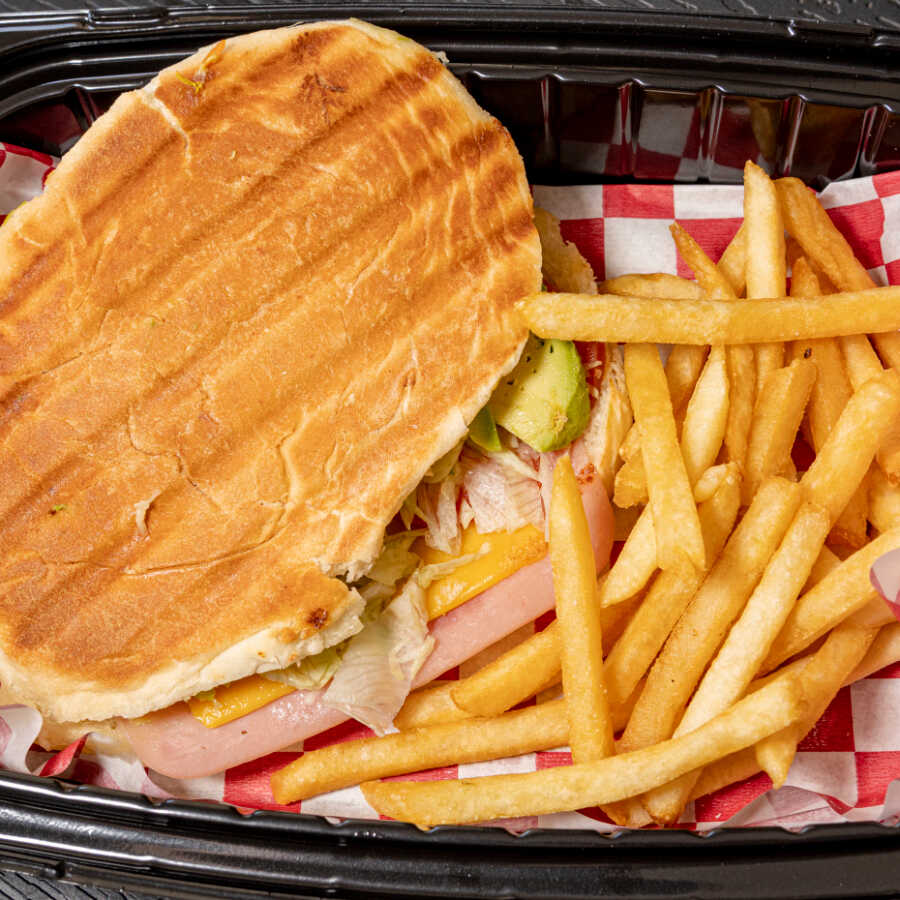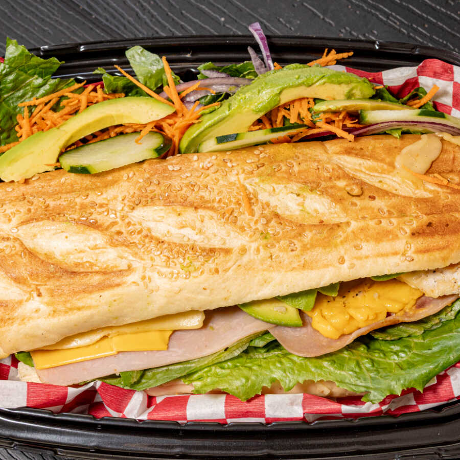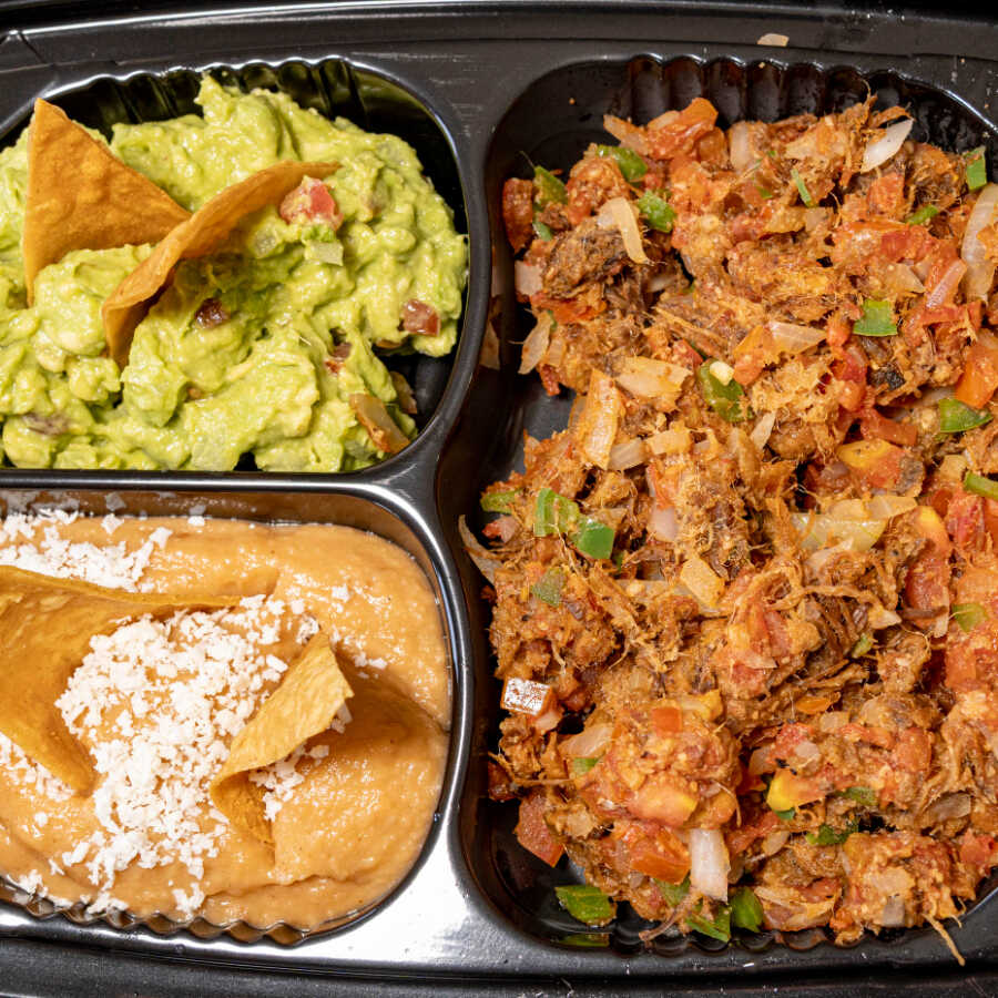 Torta Deshebrada de aguacate, lechuga, tomate, cebolla, y chiles
