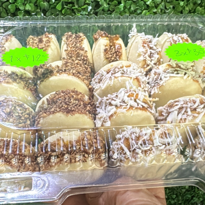 6 Pzas de sushi, 10 pzas de bonneles y 1 dedo de queso.