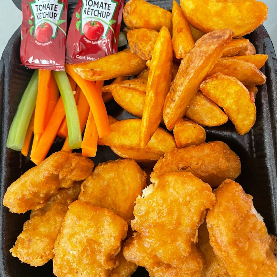 Nuggets de pollo acompañado de papas gajo