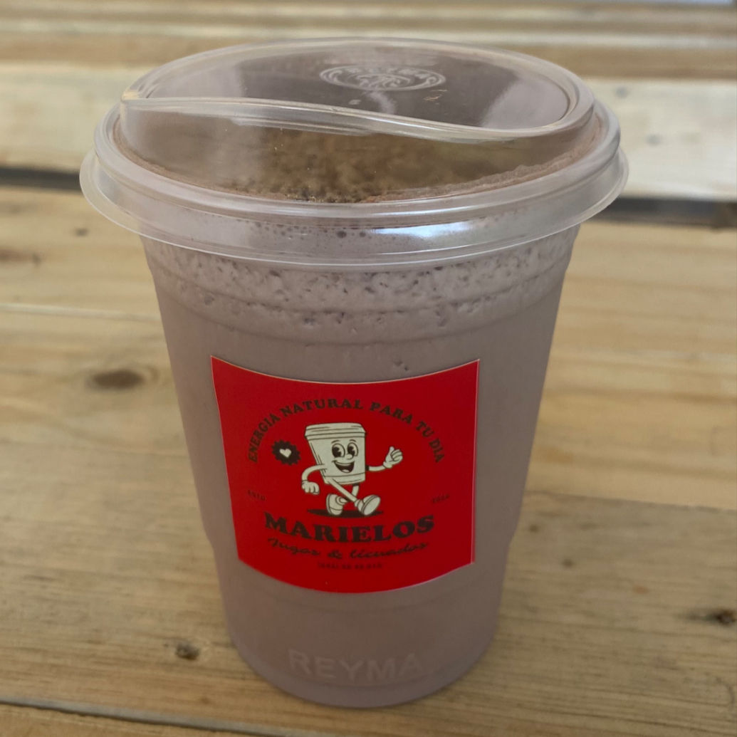 Frappe de moras, frambuesa, arándanos y fresa con leche y hielo.