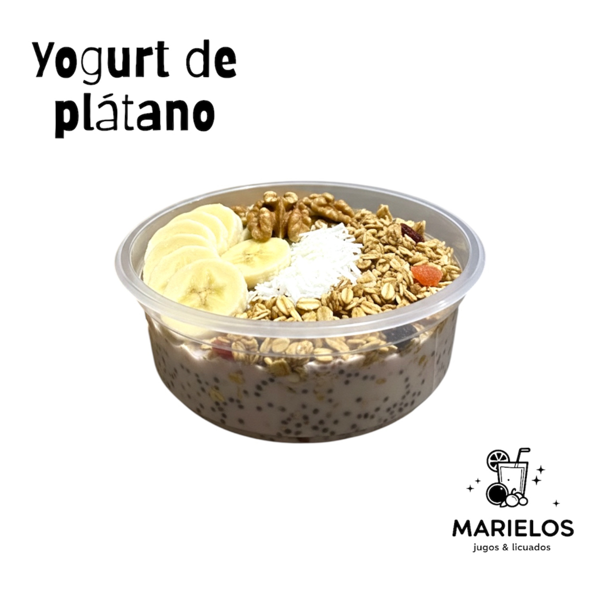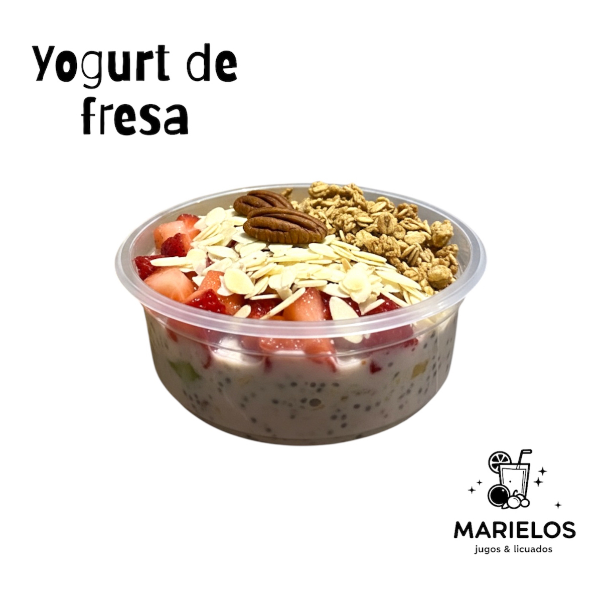 Leche fermentada con fresa, kiwi, chía, almendra nuez y coco rallado