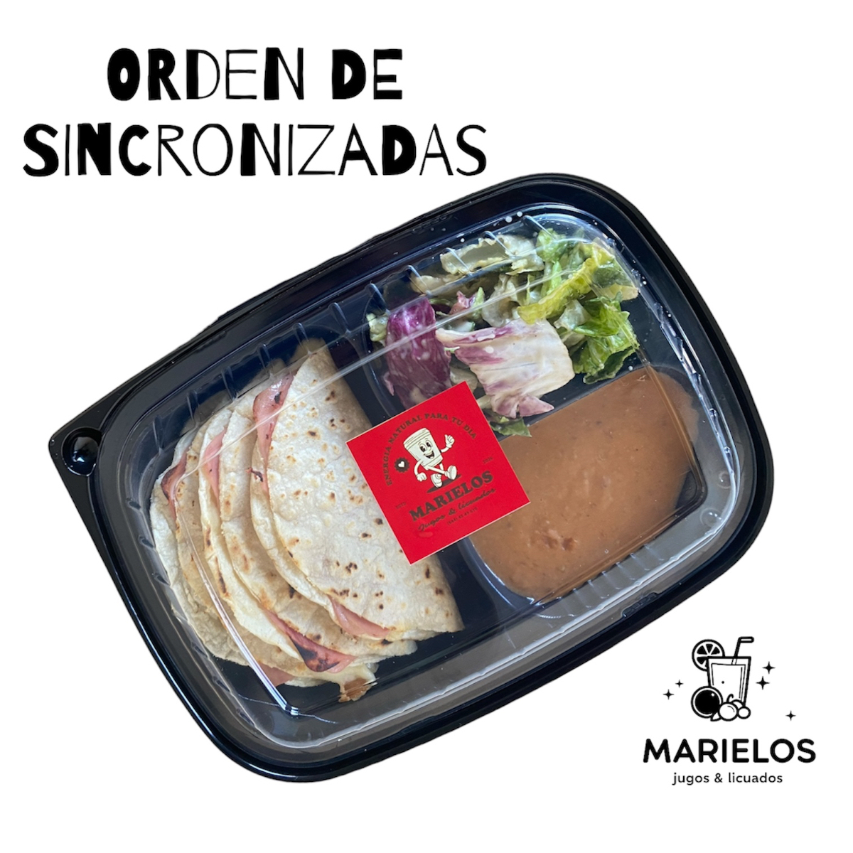 3 pzas de sincronizadas con jamón, acompañadas de frijoles y ensaldada