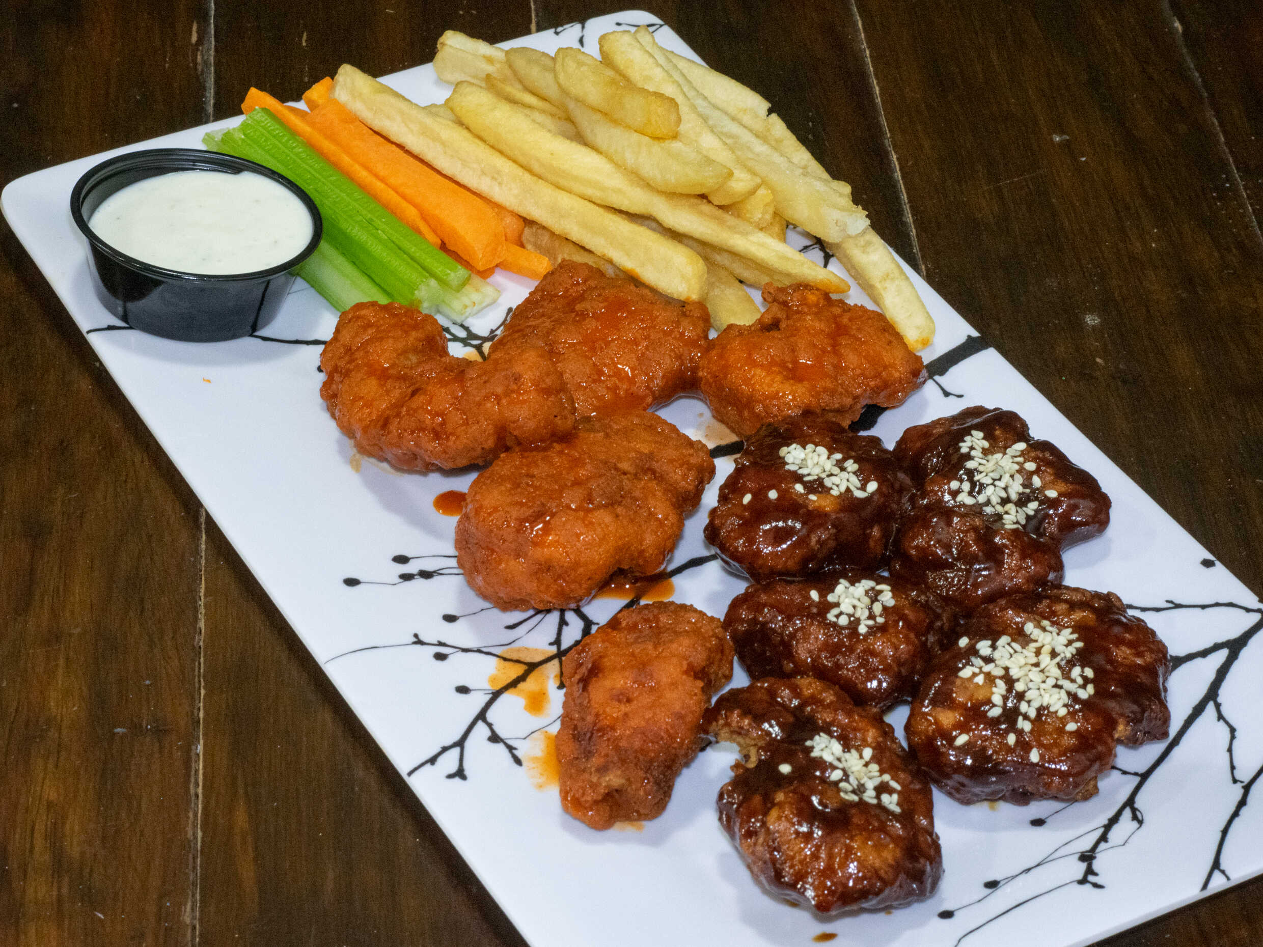 Boneless, incluye papas, vegetales y aderezo ranch.
