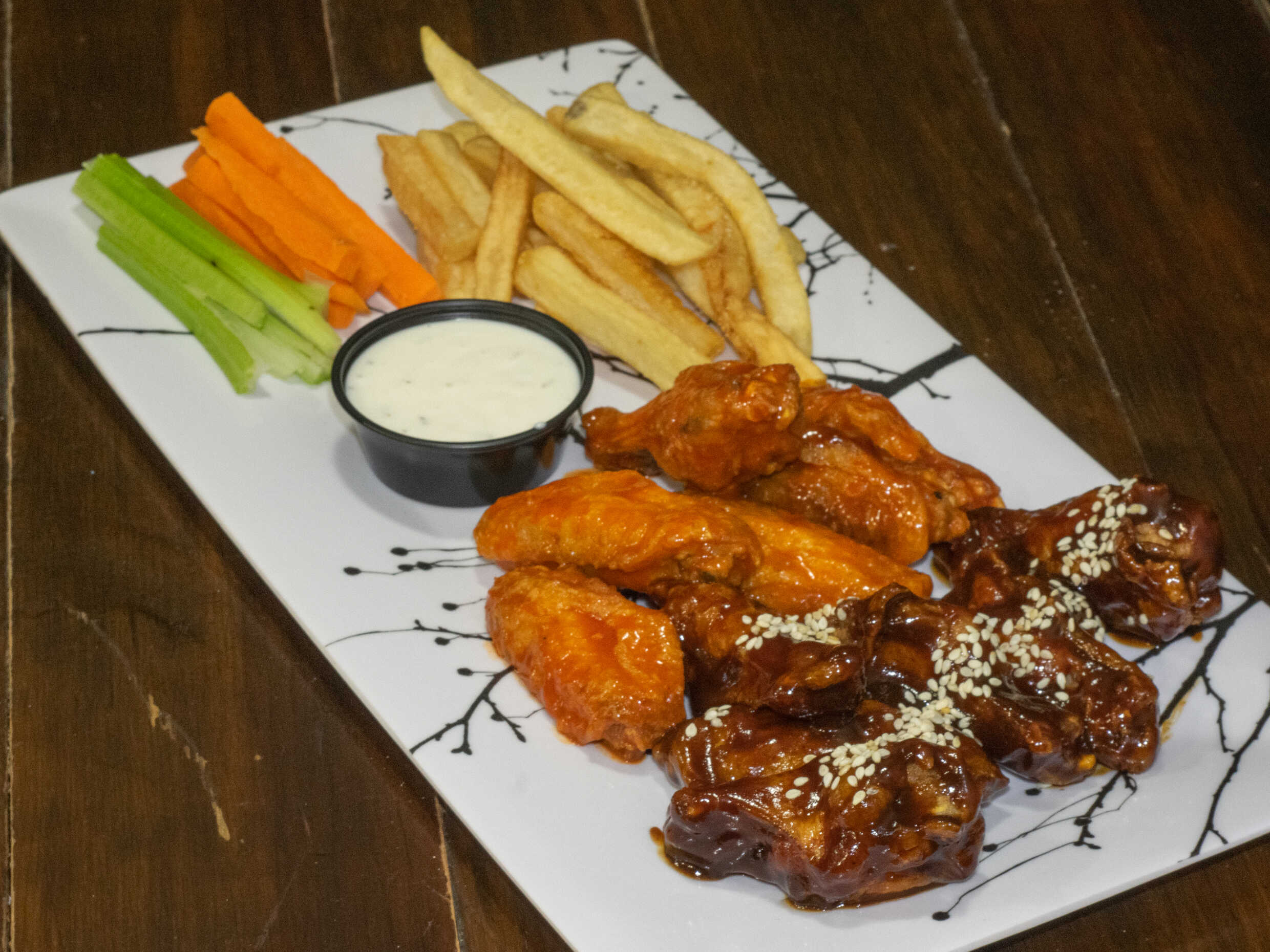 12 pzas., incluye papas, vegetales y aderezo ranch.