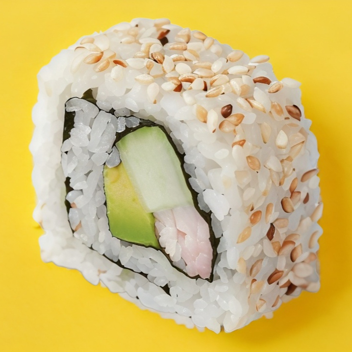 California con ajonjolí PF y PD de cangrejoñ con aguacate,queso crema y pepino