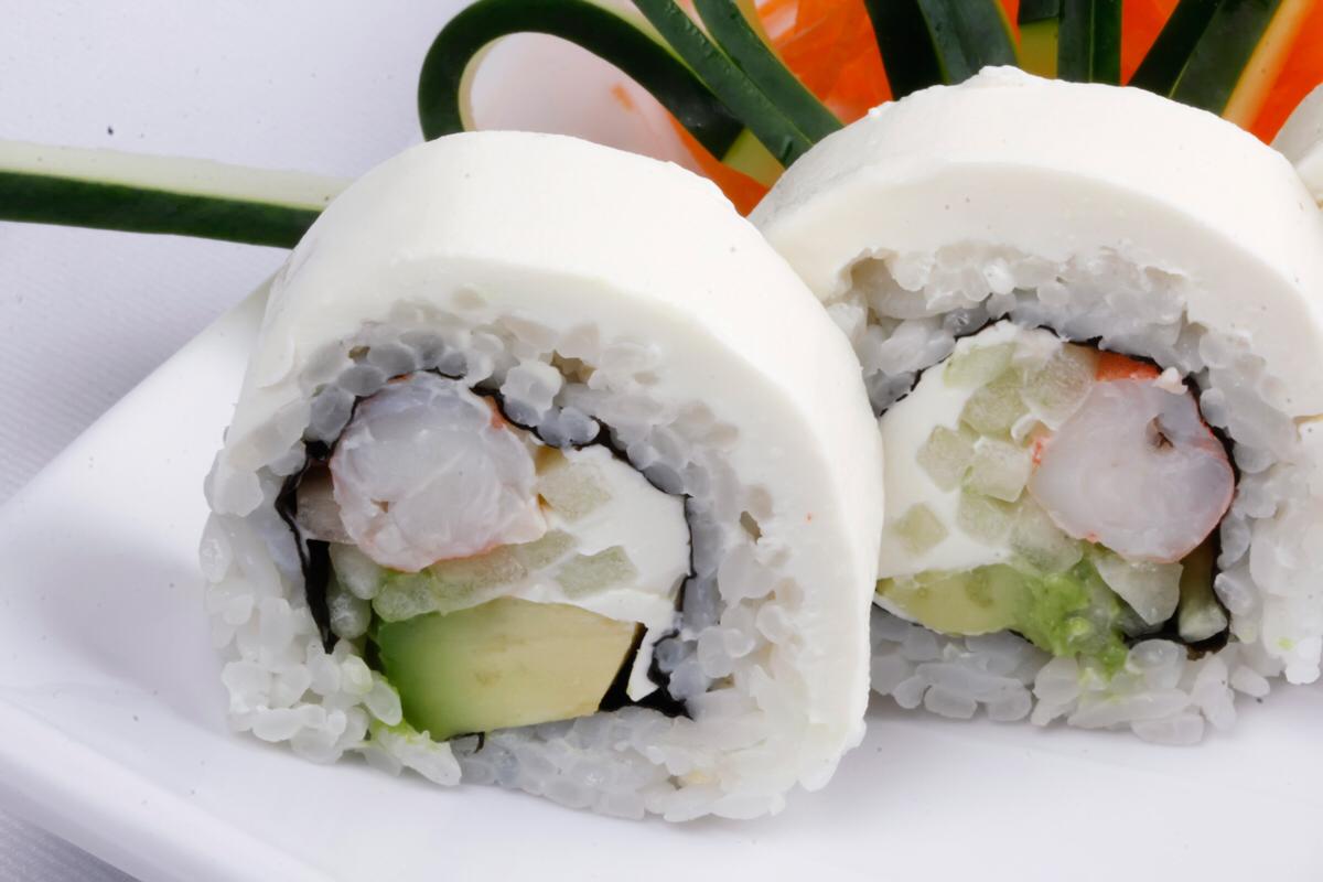 Sushi por fuera Philadelphia con ajonjolí por dentro Alga,camarón o cangrejo , aguacate, pepino