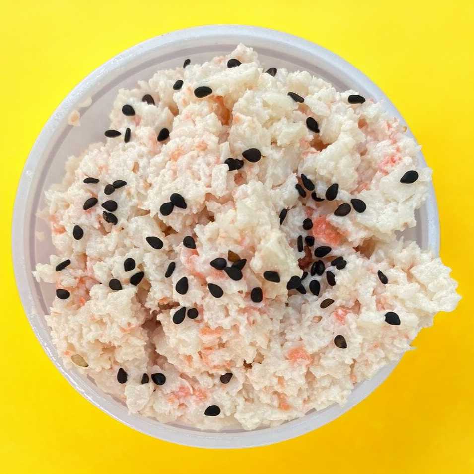 ensalada de surimi con philadelphia , mayo,ajonjoli e ingredientes de la casa(baby crab) 4oz