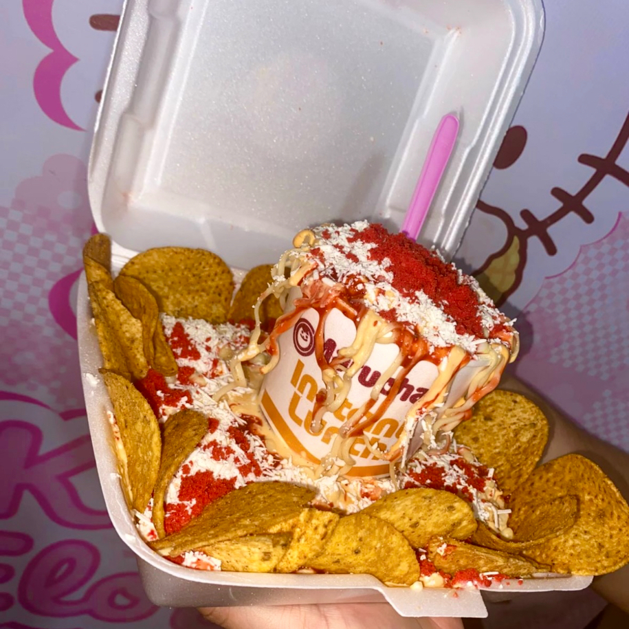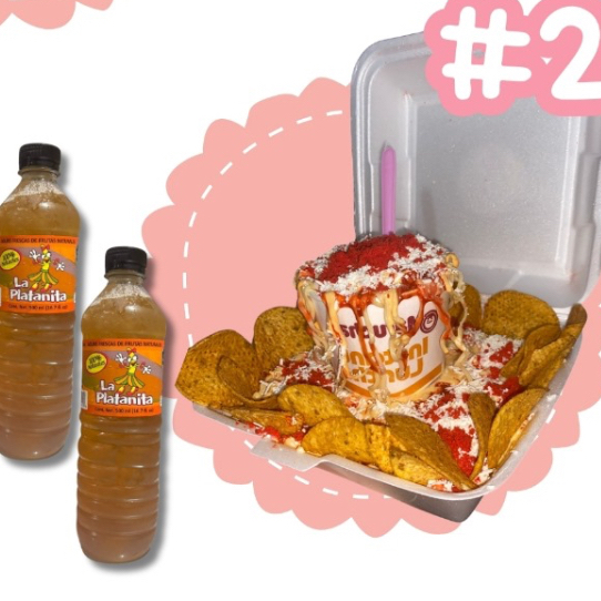 Elote, Sabritas a elegir, Maruchan a elegir, Mayonesa, Media Crema, Limón, Chipotle, Queso rayado