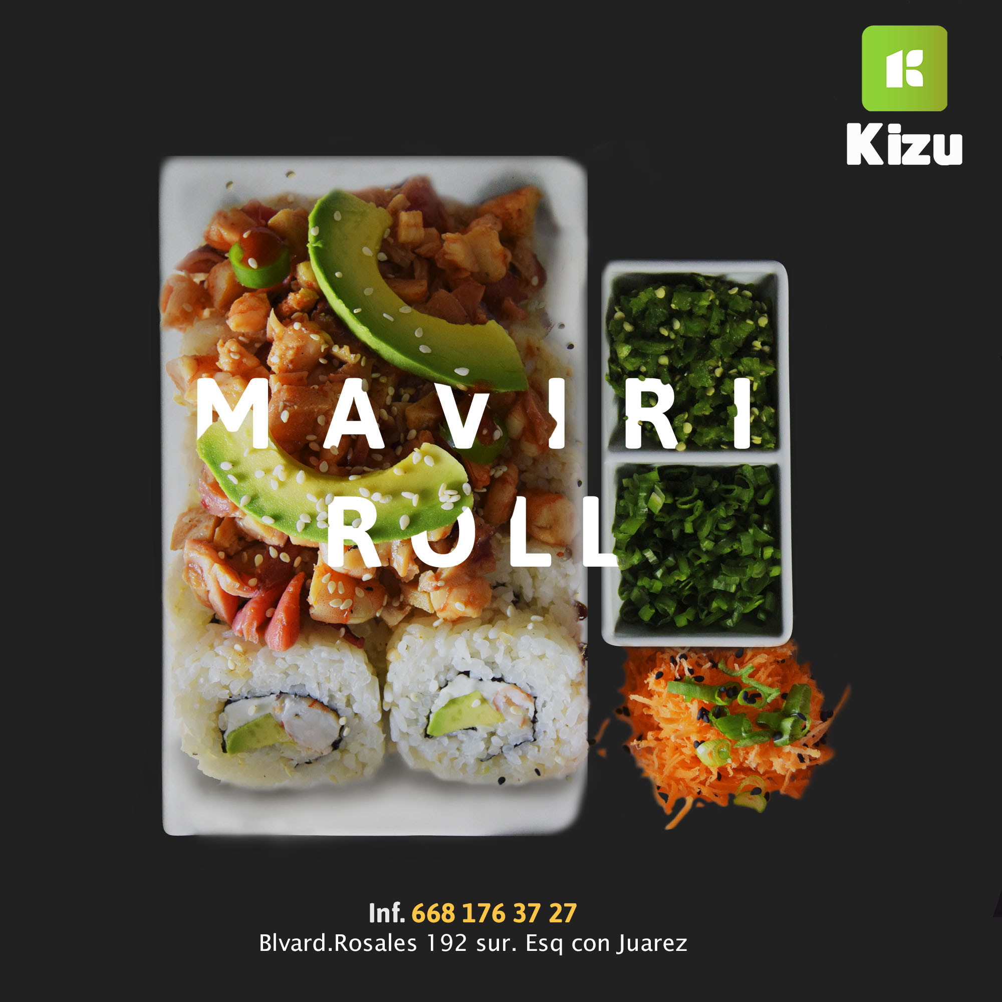 Alga nori por fuera , por dentro ensalada tampico, atun fresco, camaron, aguacate, pepino, philadelphia