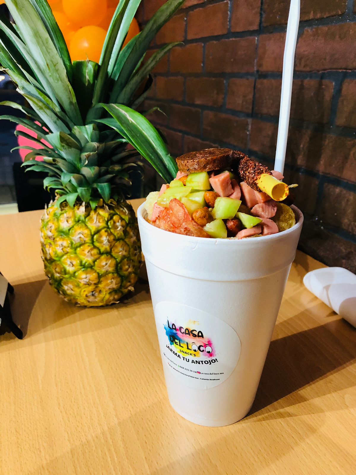 Se agregan frutas y verduras en existencia al azar. (Jicama, piña, sandía, pepino, zanahoria) salsas y chile en polvo