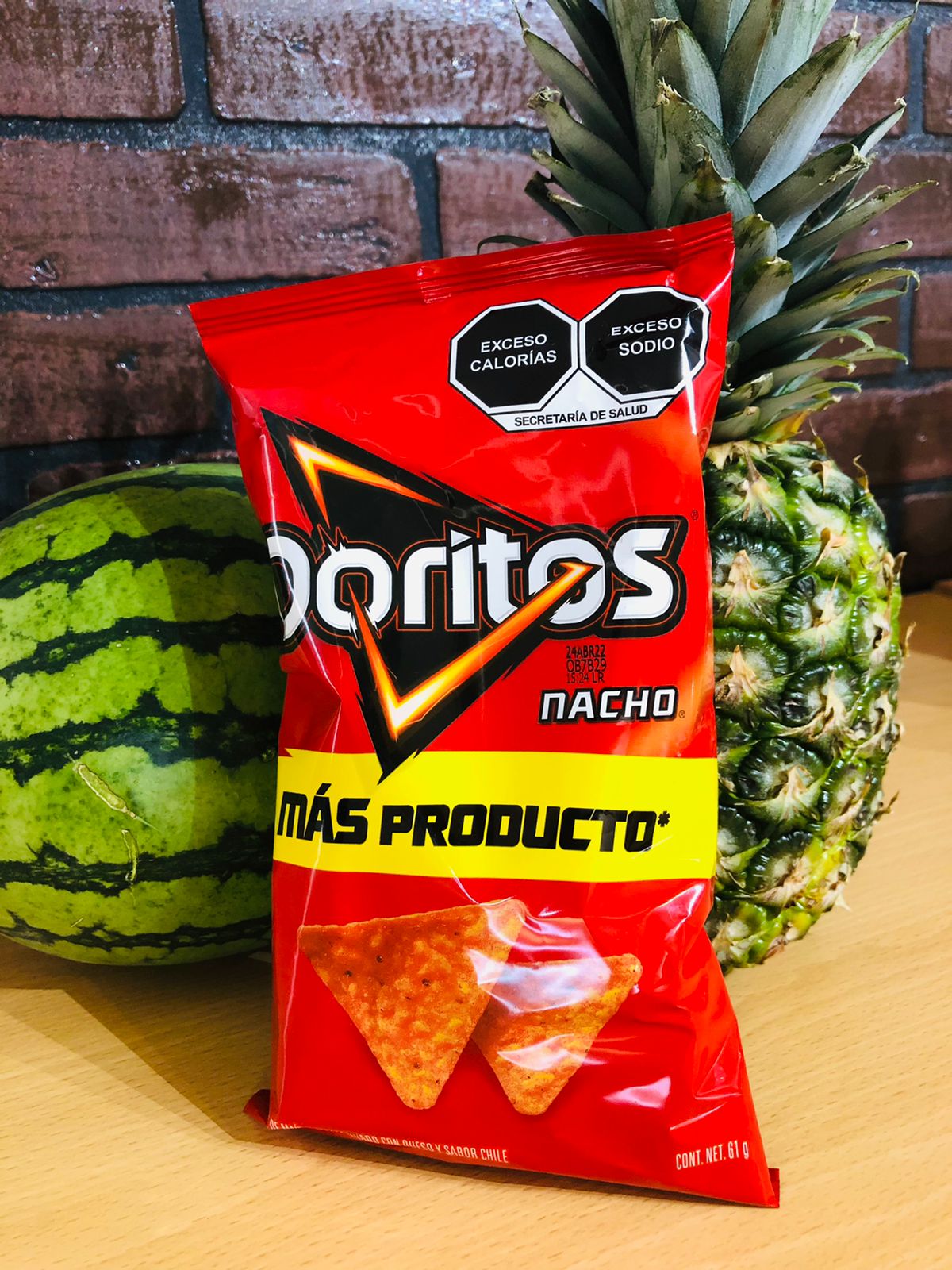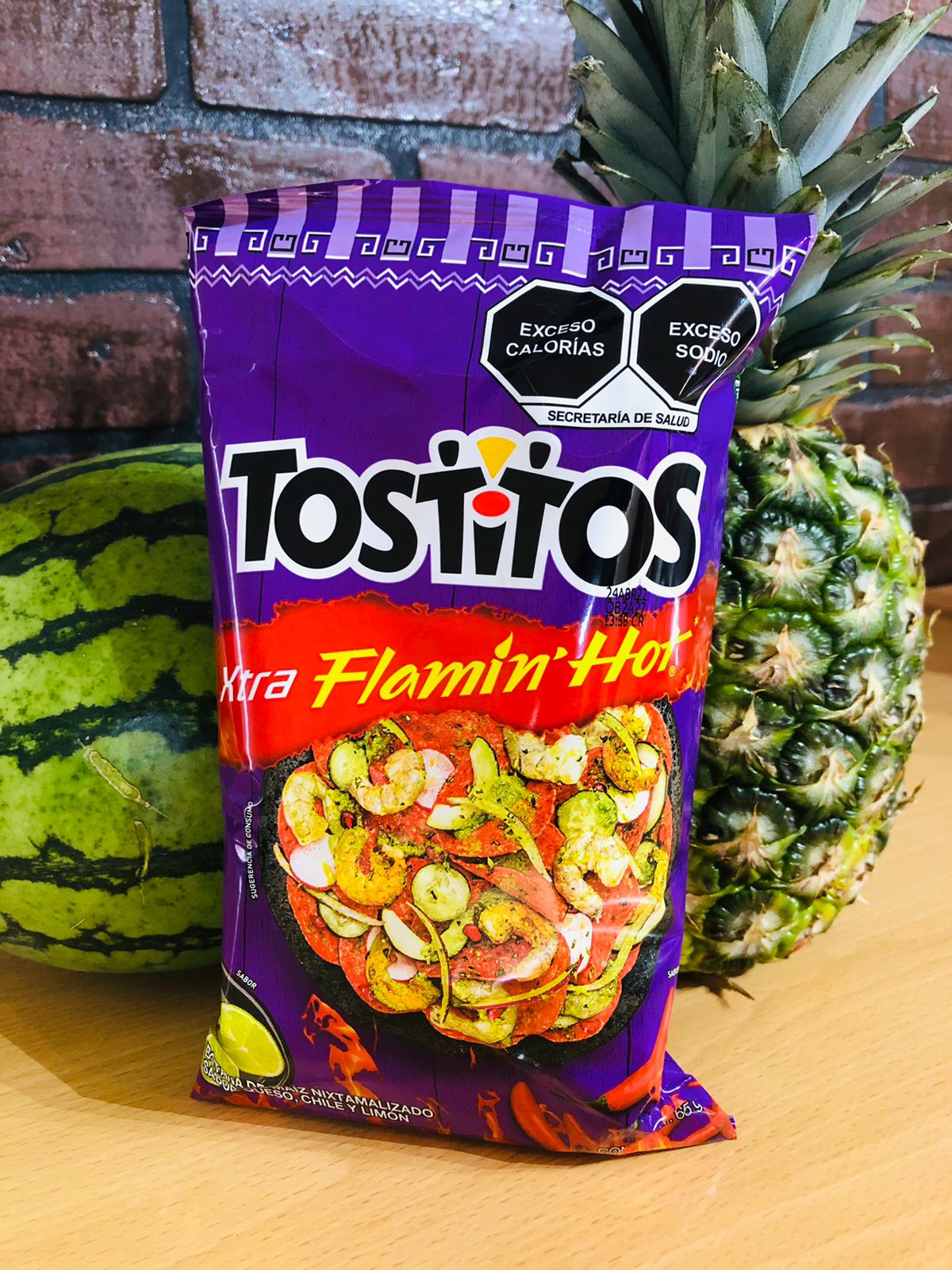 Tostitos, pepino, cacahuate, rielito, serpentina, chamoy, limón.