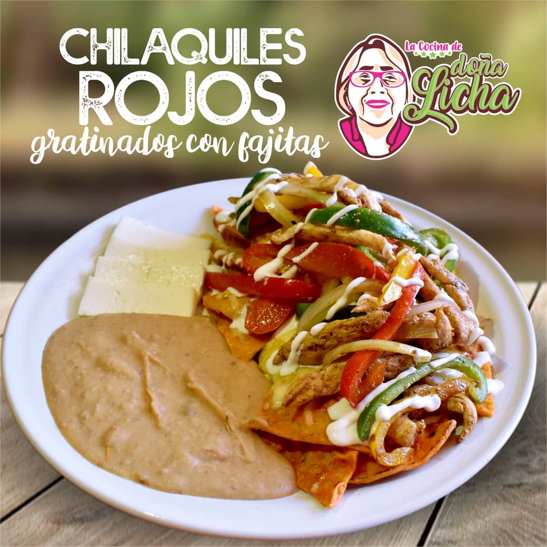 De pollo bañadas en salsa y queso gratinado, acompañado de frijol. Orden de 3.