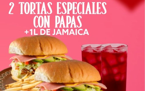 Litro de Agua de Jamaica*1 + Torta Especial con Papas*2