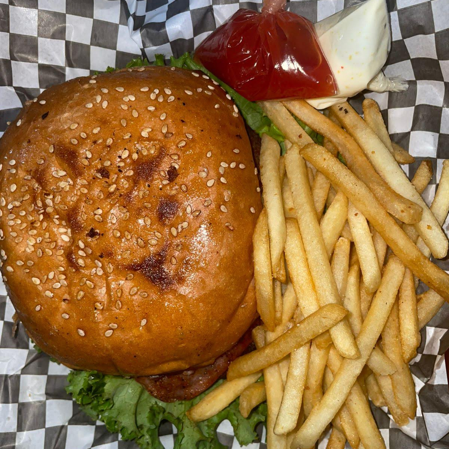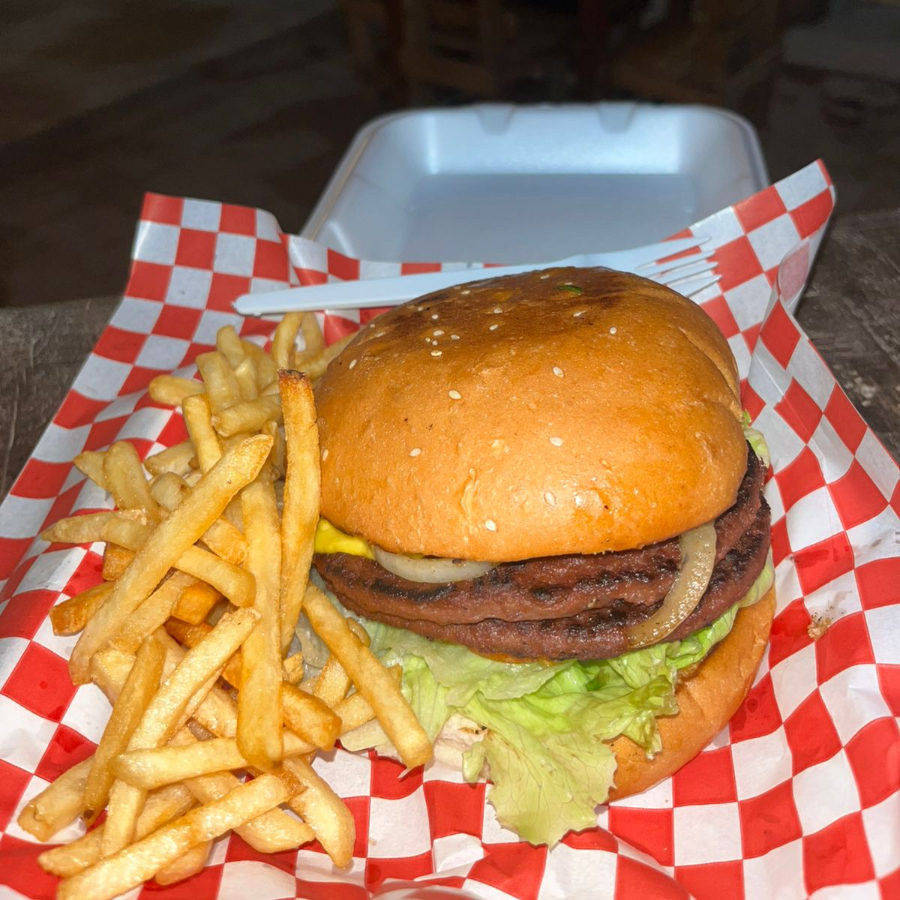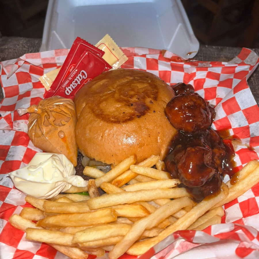 1 Hamburguesa sencilla, Media orden de boneless, media orden de papas