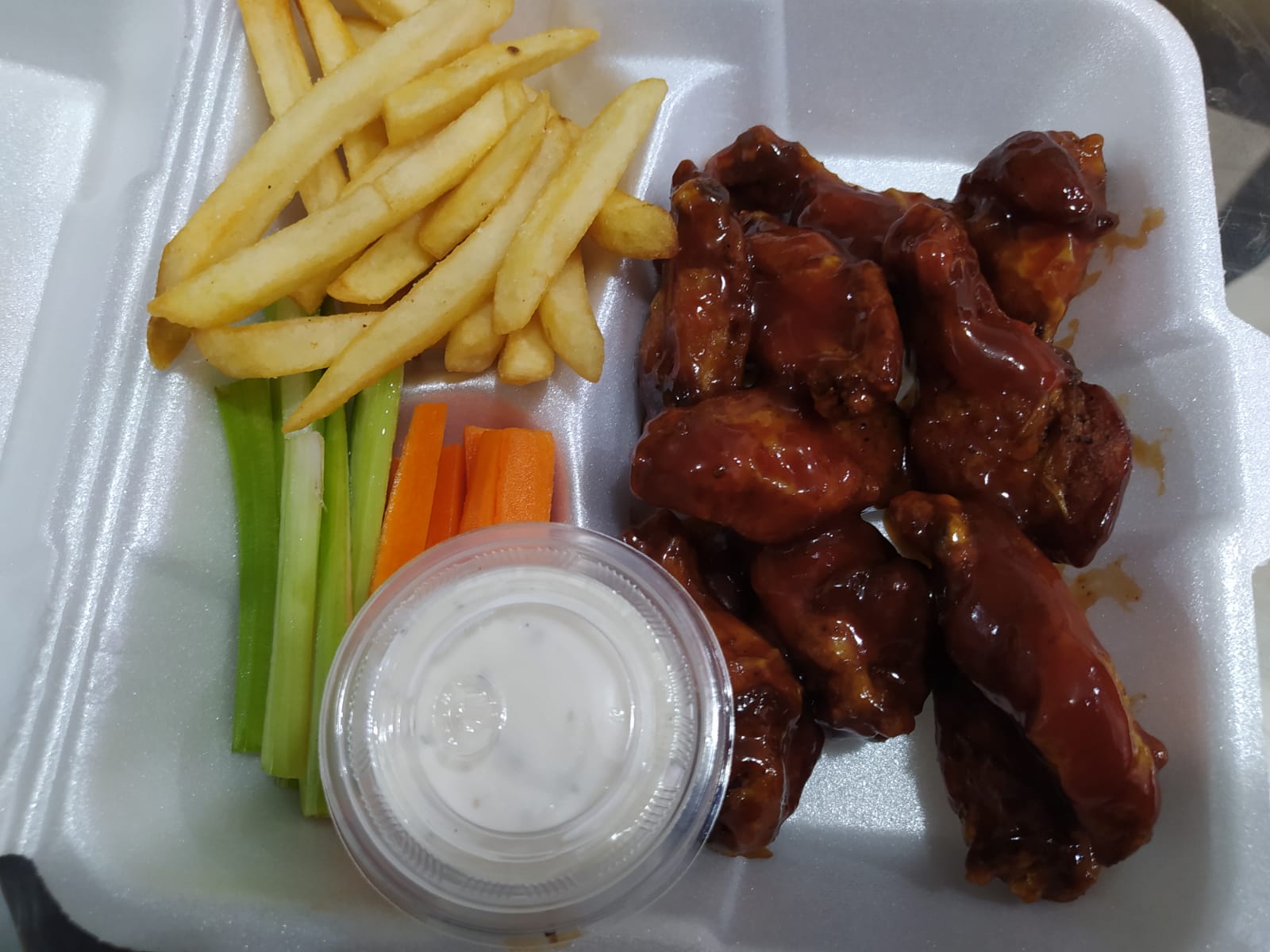 Acompañadas de ranch, zanahoria y apio.