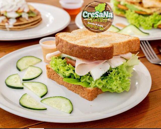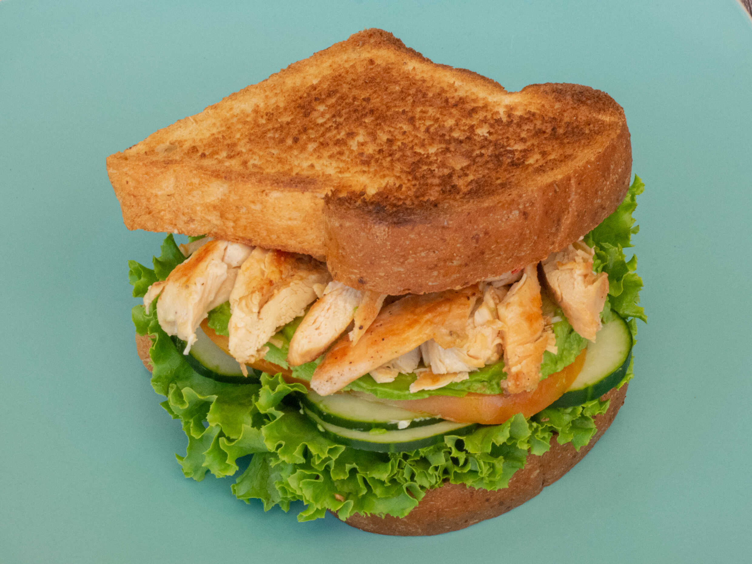 Lleva lechuga, tomate, aguacate, pepino y aderezo chipotle.