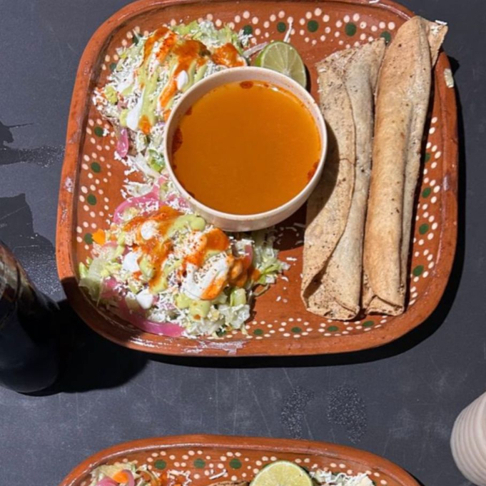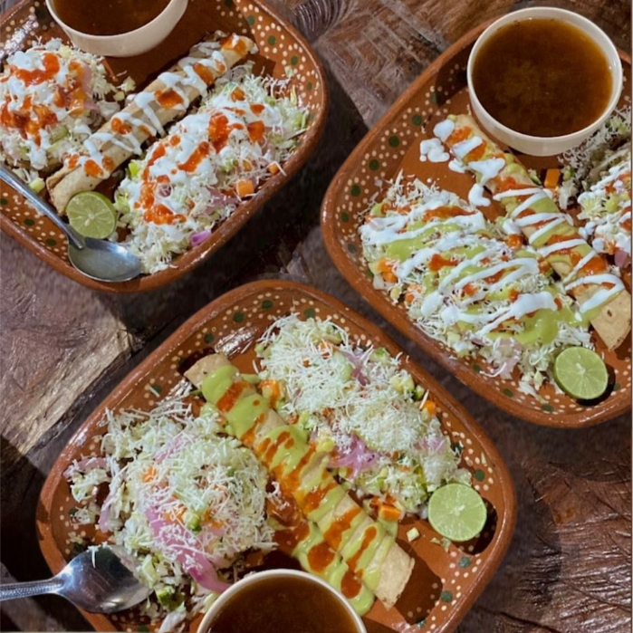 Por dentro requeson. Vegetales (lechuga, cebolla curtida, zanahoria y calabaza precocida y queso de rancho rallado)