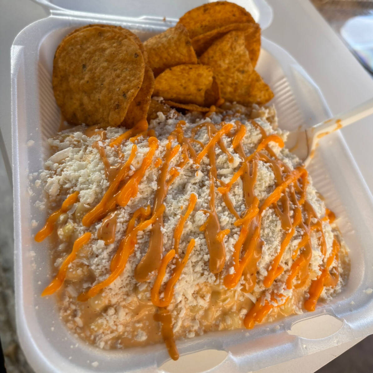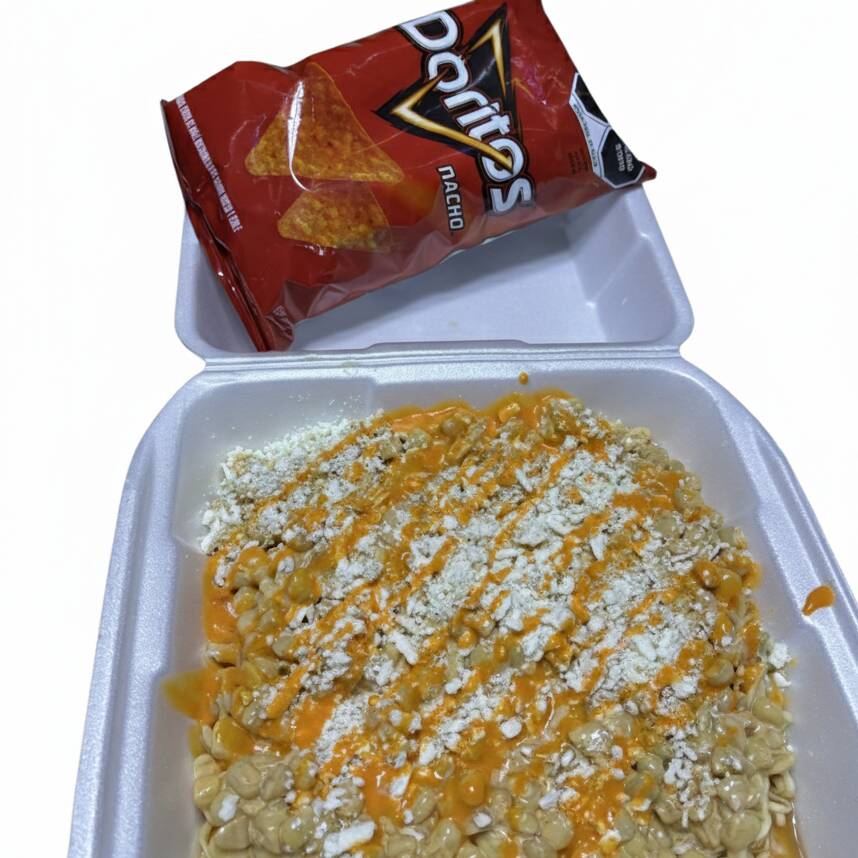 elotes preparados y tostitos