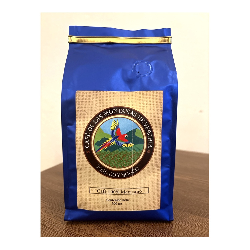 Bolsa de 500 grms. de café tostado y molido, con aroma intenso y saber equilibrado, perfecto para disfrutar un café de calidad en casa.