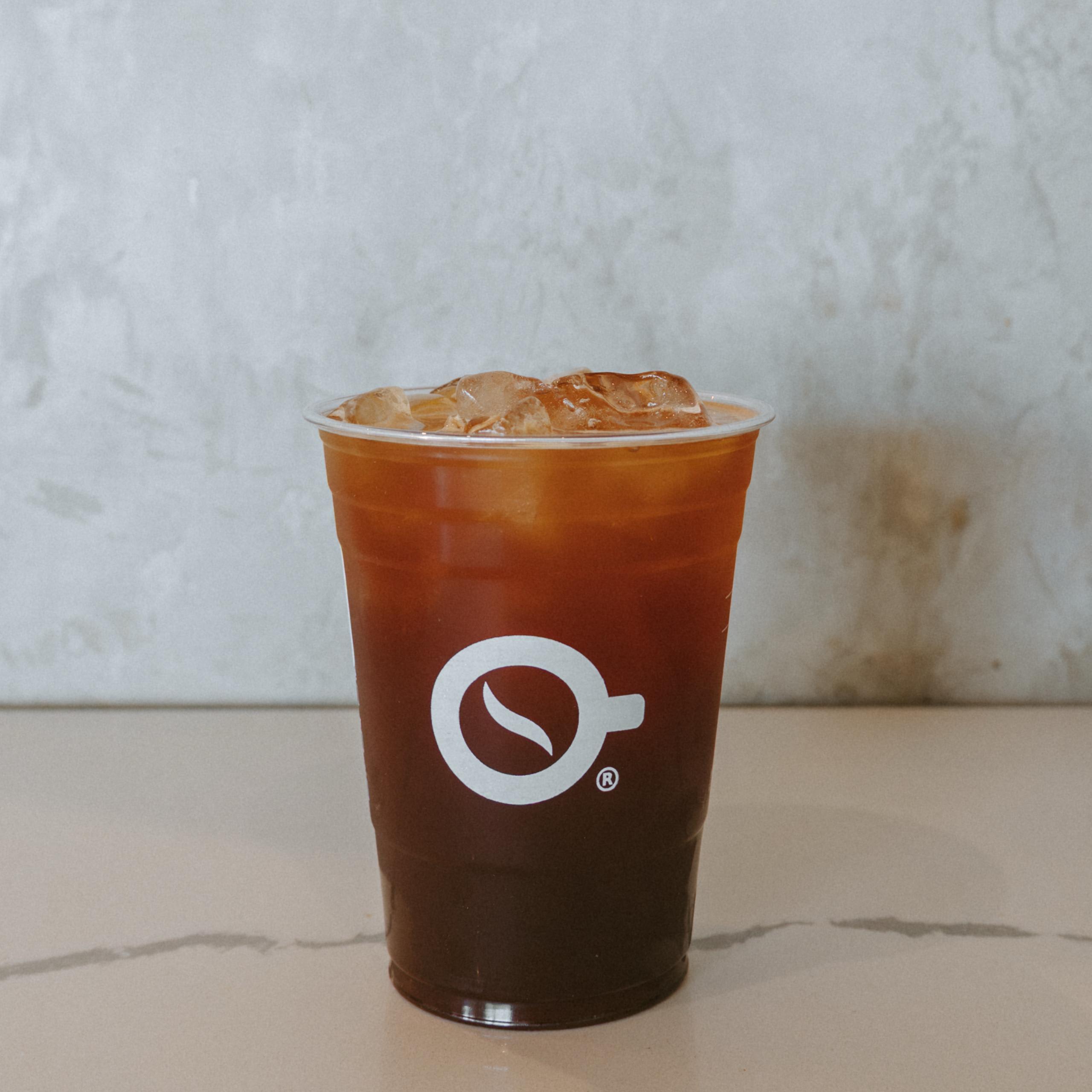 agua, hielo en cubos y 2 oz de espresso.