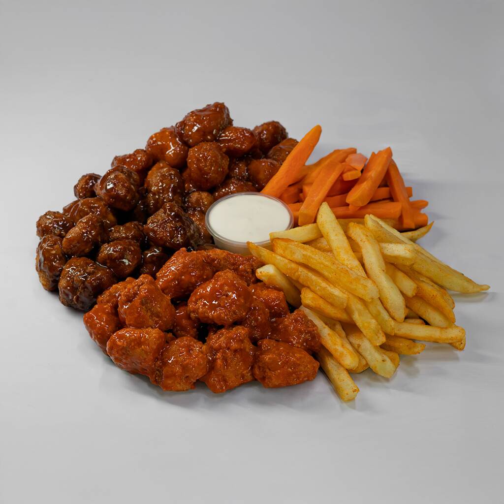 Riquísimos vegetales frescos, coronada con boneless en salsa de tu elección, incluye aderezo ranch.