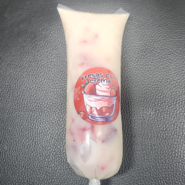 Fresas con crema, su contenido es de 16 oz (473 ml.)