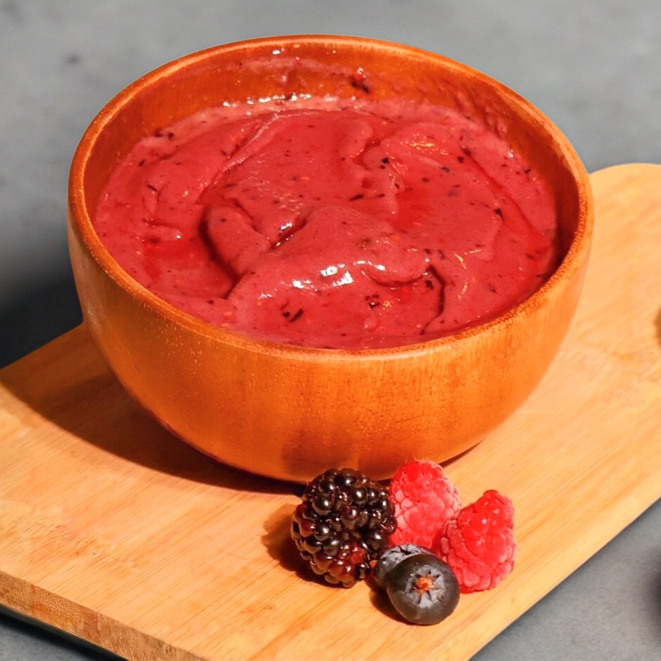 Smoothie bowl de açai, frutos rojos y platano, sin azucar ni lacteos. (3 Toppings gratis)