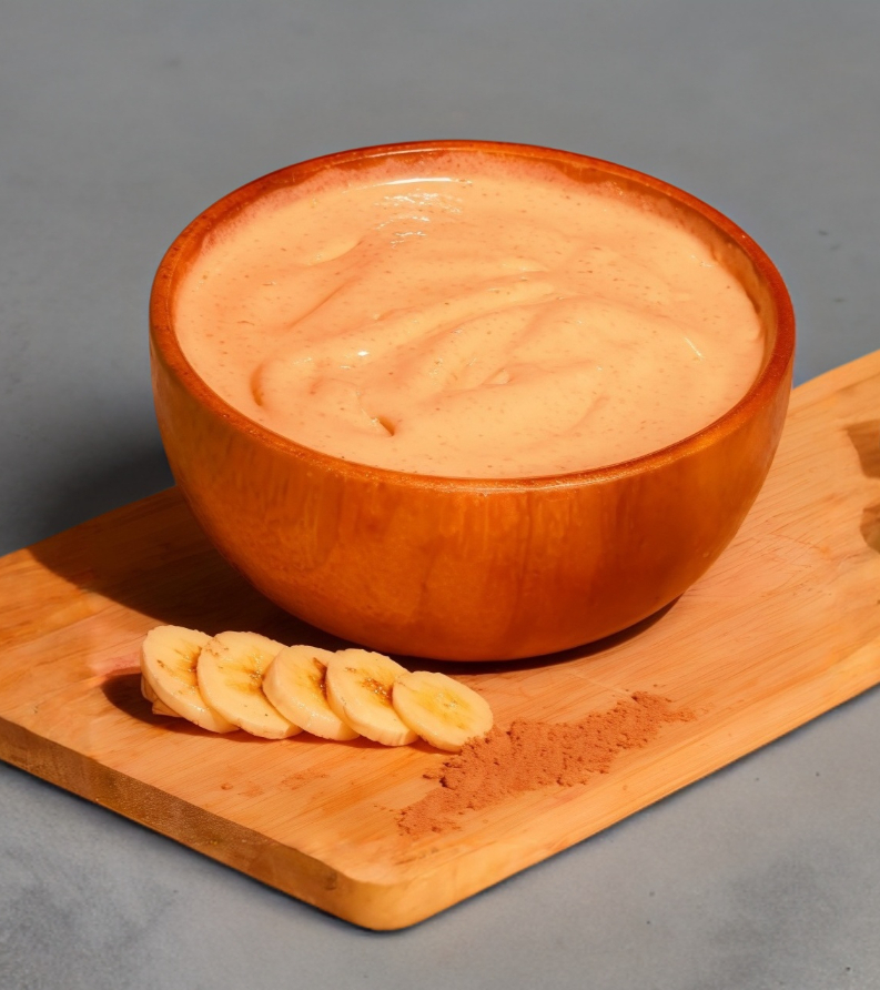 Smoothie de platano, crema de cacahuate s/a, leche de almendras, cacahuate, amaranto y datil, sin azucar.