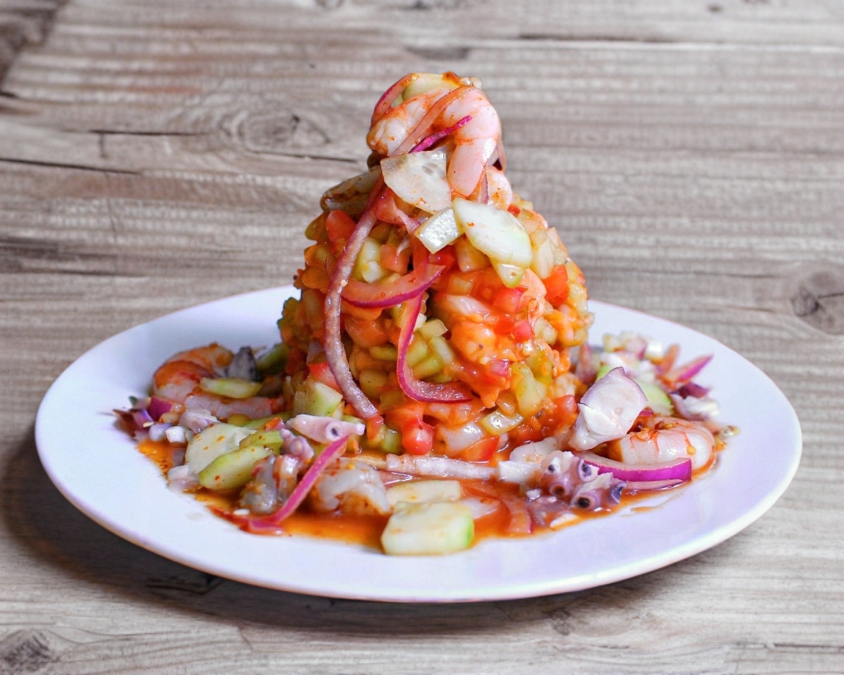 (ceviche mitorero) fusion de sabores con mariscos varios Presentacion MEDIO LITRO