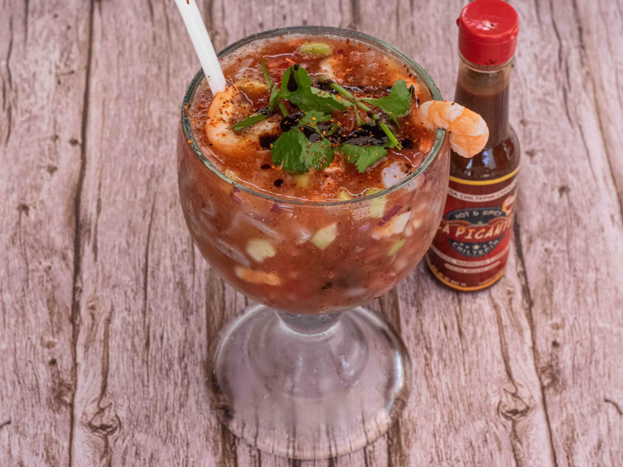 contiene clamato preprarado y salsas de la casa verdura picada..