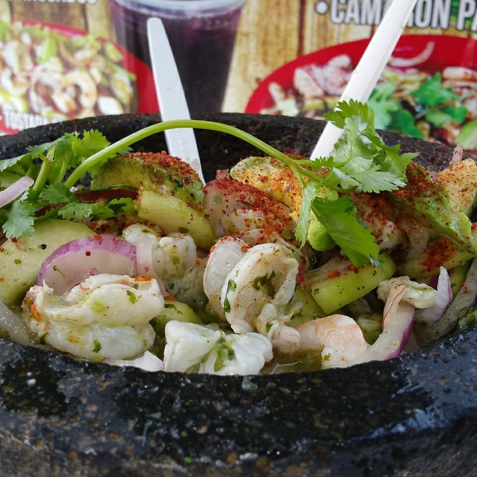 Tostada Suprema: fusion camaron cocido y ahogado.