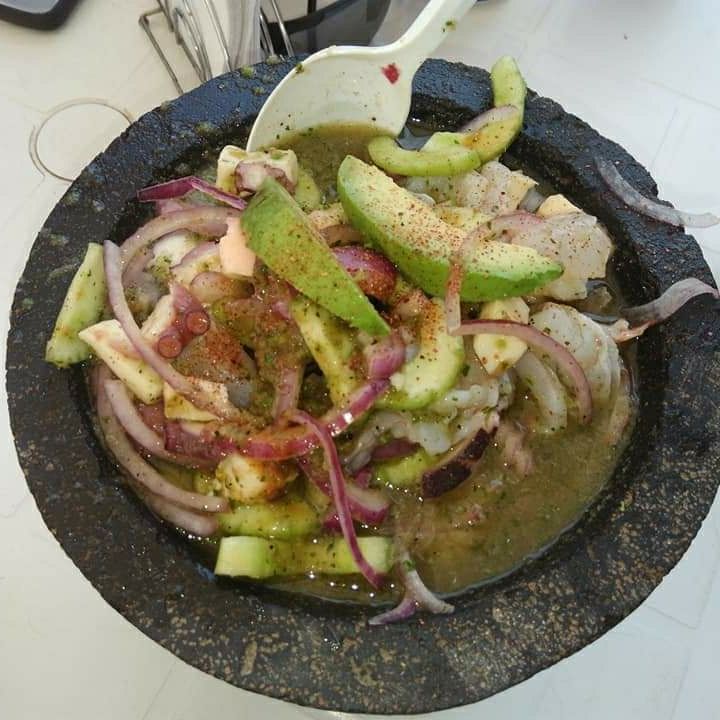 Camaron cocido, ahogado, ceviche especial, pulpo y pescado